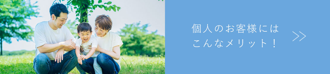 個人のお客様・企業のお客様それぞれのメリットをもっと詳しく▼